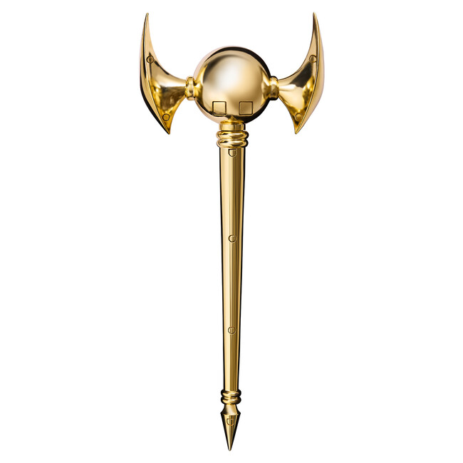 本体の外観は、真空蒸着メッキを施すことで、豪華な見た目になっており、発光ギミックと合わせることで、劇中のような黄金の輝きを放ちます。
