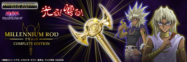 2000年より放送されたアニメ『遊☆戯☆王デュエルモンスターズ』より、主人公・武藤遊戯のライバルの一人、『マリク・イシュタール』が持つ「千年ロッド」を、LED発光&音声ギミックを搭載したコンプリートエディションとして商品化いたします。