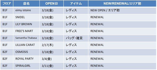 ブランド周年のタイミングやサステナブル観点から最新内装でブランドを表現する「スナイデル」「リリー ブラウン」をはじめ、人気レディスショップがリニューアルいたします。またInstagramで33万人以上のフォロワーをもつMANAMIがクリエイティブディレクターを務める「エイミー イストワール」が都内2店舗目・池袋エリア初出店いたします。