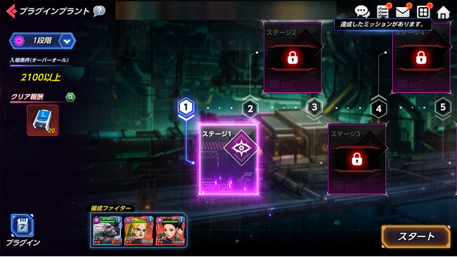 新たな装備アイテム「プラグイン」を成長させて高い段階に挑戦していくコンテンツです。各階ごとに有利な相性が存在するので、様々な種類のファイターを育成して攻略してください。