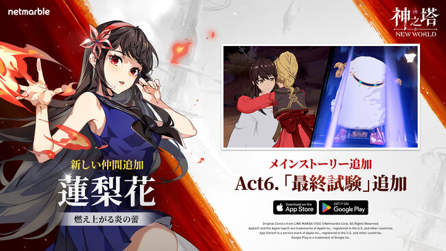 〈神之塔:NEW WORLD〉新SSRキャラとして火炎師「蓮梨花」が参戦!ストーリーモードAct6や新たな冒険ステージを追加!アップデート記念イベントも開催