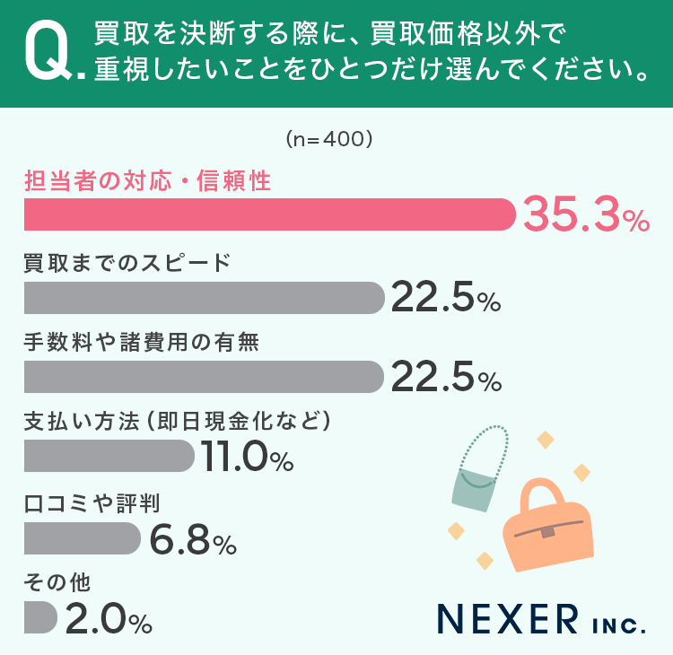 「買取までのスピード」や「手数料や諸経費の有無」の22.5%を大きく上回っています。
