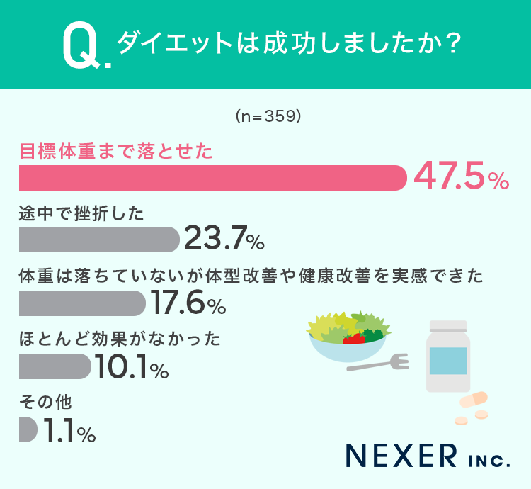 ■47.5%が、ダイエットで「目標体重まで落とせた」