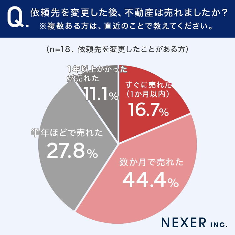 ■44.4%が、依頼先を変更した後、不動産は「数か月で売れた」