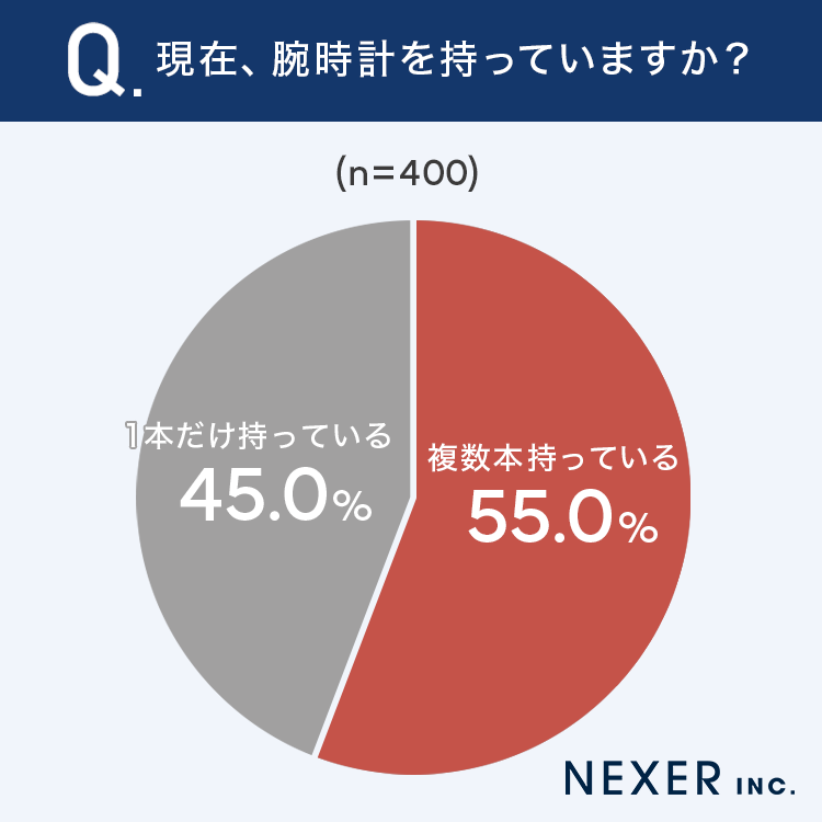 55.0%が複数本持っていると回答し、1本だけ所有している方を超える結果となりました。「腕時計は1本あれば十分」という考えよりも、複数の腕時計を使い分けるスタイルが主流になりつつある様子がうかがえます。