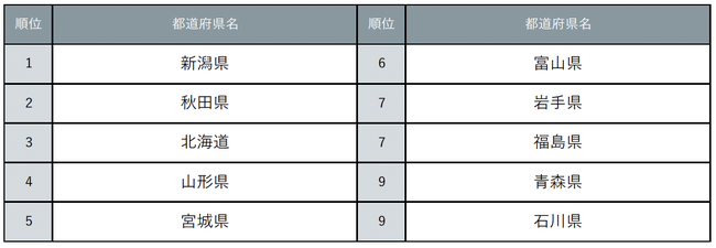 【4位:山形県】「冷たくキレイな水がある」「米といえば!」など米どころイメージが後押しした山形県。庄内平野は一大産地として知られ、生産量もトップクラス。必要条件や環境が揃い、昔から米作りが盛んな地域です。『はえぬき』『雪若丸』などのブランド米が知られる中、「食べるとお米の甘みが広がる」という『つや姫』に関するコメントも見られました。