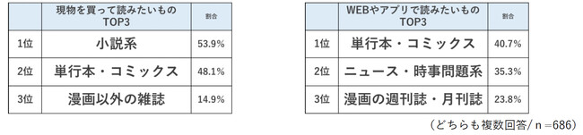 “WEBやアプリ(電子版)で読みたい” 1位「単行本・コミックス」、2位「ニュース・時事問題系」