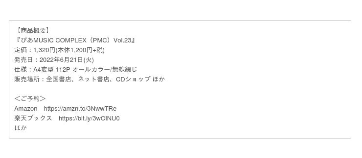 『ぴあMUSIC COMPLEX(PMC) Vol.23』コンテンツ