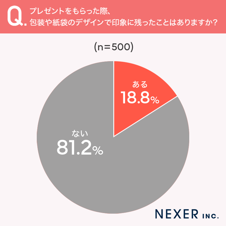 続いて、プレゼントをもらった際に包装や紙袋のデザインで印象に残った経験があるかを聞いてみました。