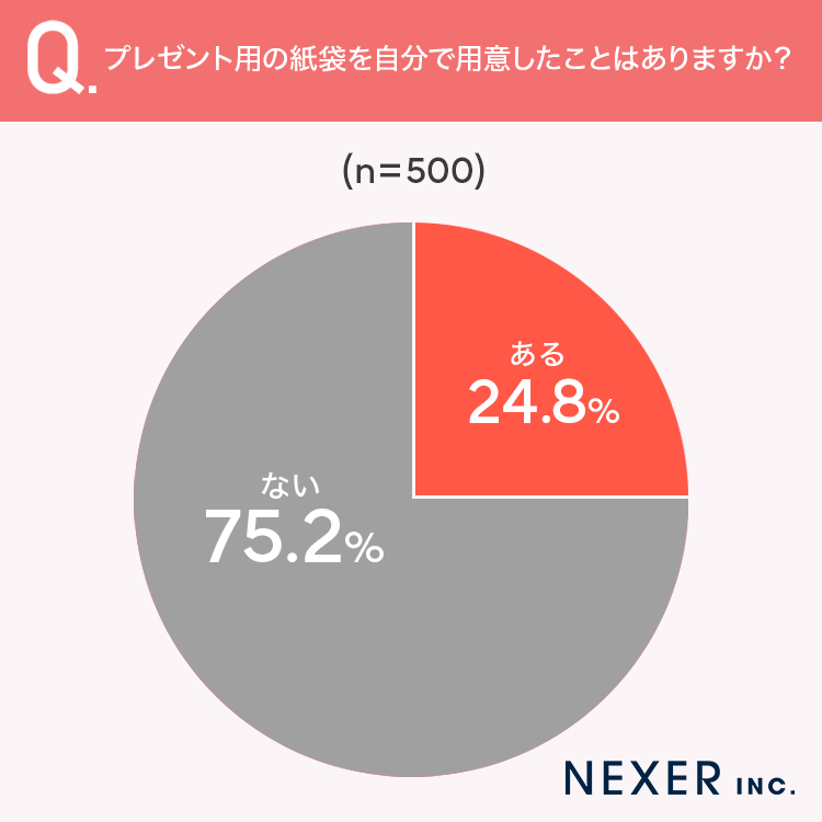 その結果「ある」と回答した方は24.8%で、約4人に1人が自ら紙袋を用意した経験を持っていることがわかりました。