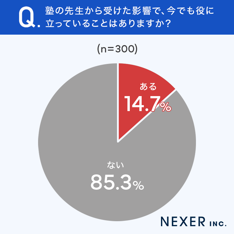■14.7%が、塾の先生から受けた影響が「今でも役に立っている」と回答