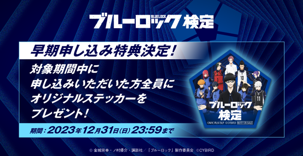 「ブルーロック検定」申し込み・受験開始!合格認定カードや満点合格ステッカーなど検定オリジナル特典多数!応援団風の描き起こしミニキャライラストを使用したグッズも販売!