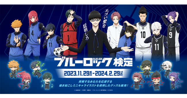 株式会社サイバード(本社:東京都渋谷区、代表取締役社長 兼 CEO 本島 匡、以下「サイバード」)は、TVアニメ「ブルーロック」の知識度を測る「ブルーロック検定」を、2023年11月29日(水)から実施します。検定に挑戦するあなたを応援する応援団風の描き起こしミニキャライラストを使用したグッズも販売します。