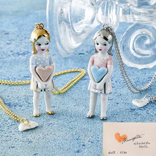 フランス人陶芸作家ナターシャプラノが、三越創業350周年を記念して制作した人形ネックレス。デザイナー直筆のカード付きです。