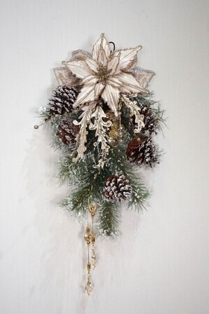 シャンパンゴールドをベースカラーにしたティアドロップ型のクリスマススワッグ。ご自宅の玄関やお部屋を華やかに彩ります。