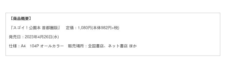 知らなかった! 遊べる&使える“スゴイ!”「公園」の魅力が満載 「スゴイ!公園本 首都圏版」本日発売!