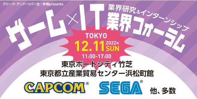 【2024卒向け】カプコン、セガなど、人気ゲーム・IT企業が一堂に!12/11(日)「ゲーム×IT業界フォーラム」、約3年ぶりのリアル開催 〜業界研究&インターンシップ予約ができる就活準備イベント〜