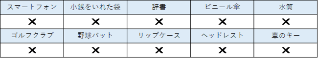 車両水没時にドアや窓が開かないことを想定し、車内にありそうなもの10点と緊急脱出用ハンマーで窓を割ることが可能かどうかをテストし、脱出方法として適切な道具を検証しました。20代女性と男性(学生)が座った状態でそれぞれ実験したところ、いずれも窓ガラスを割ることはできませんでした。実験結果から、代用品では窓ガラスは割れず、簡単に割ることのできる「緊急脱出用ハンマー」の必要性が充分に確認できました。右記URLにて実験動画を公開中です。https://youtu.be/hxyFBl64vco