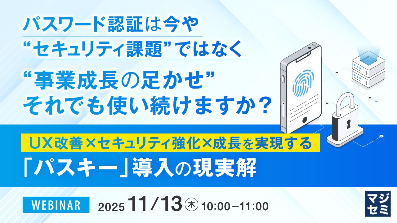 マジセミ株式会社は「パスワード認証は今や“セキュリティ課題”ではなく“事業成長の足かせ” それでも使い続けますか?」というテーマのウェビナーを開催します。