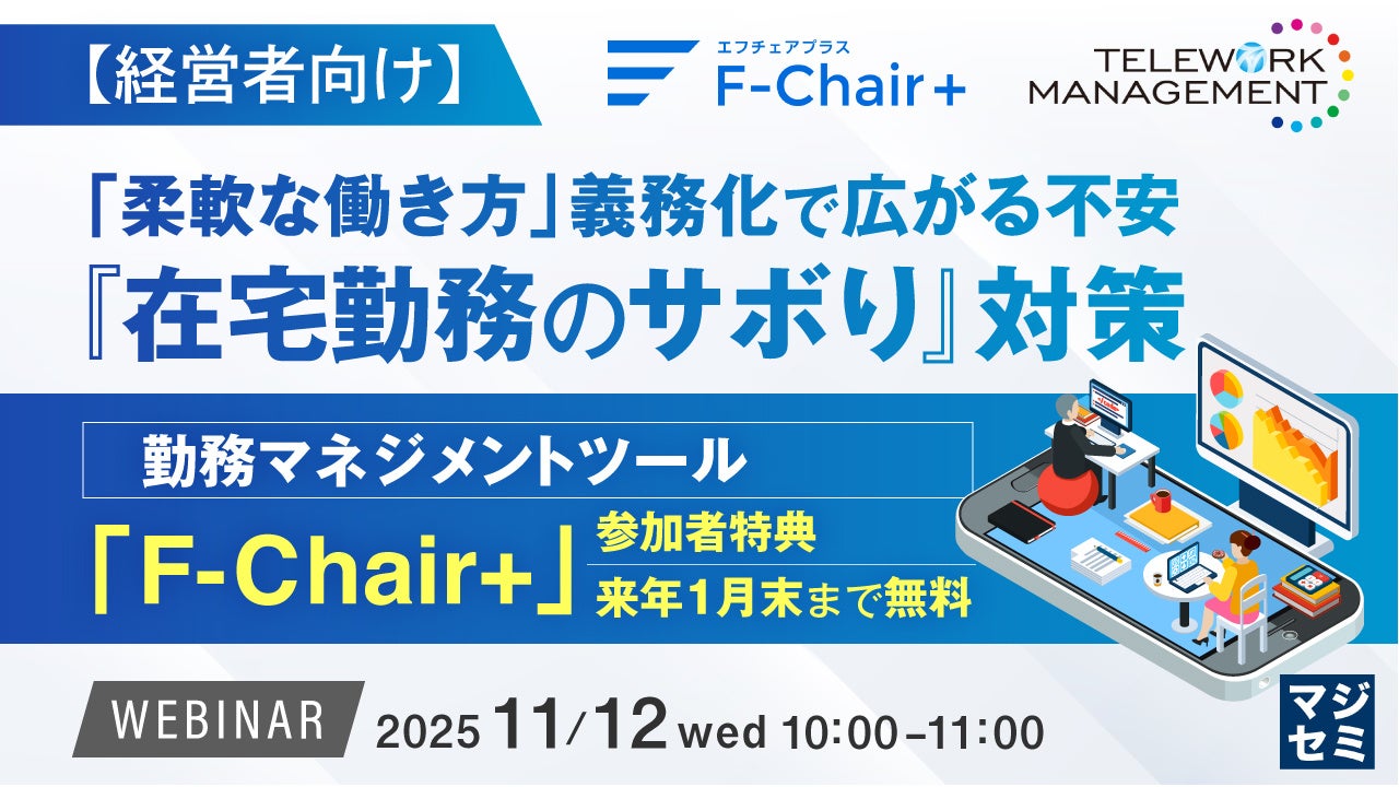 マジセミ株式会社は「【経営者向け】「柔軟な働き方」義務化で広がる不安『在宅勤務のサボり』対策」というテーマのウェビナーを開催します。