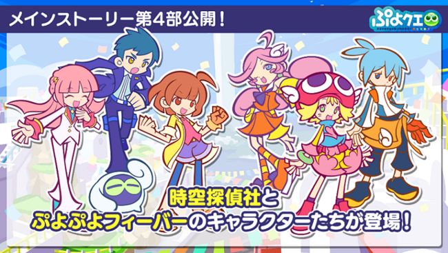 内容:時空探偵社と「ぷよぷよフィーバー」のキャラクターたちが登場するメインストーリー第4部「ぷよクエフィーバー!?の世界」を追加します!
