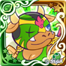 効果:緑属性カードとこうげきタイプの攻撃力を3.5 倍、体力を3.2倍にし、体力が0 になっても1 回のみ「体力1」で踏みとどまる