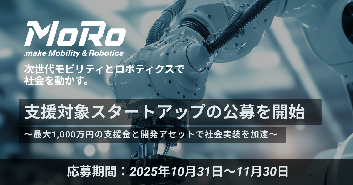次世代モビリティ・ロボティクスクラスター「MoRo」支援対象スタートアップの公募を開始
