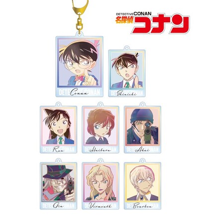 江戸川コナン、工藤新一、毛利蘭、灰原哀、赤井秀一、ジン、ベルモット、バーボンを新たなタッチで魅力的に表現し、アクリルキーホルダーに仕上げました。