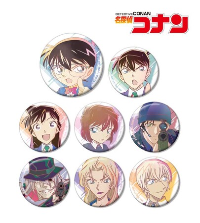 江戸川コナン、工藤新一、毛利蘭、灰原哀、赤井秀一、ジン、ベルモット、バーボンを新たなタッチで魅力的に表現し、缶バッジに仕上げました。