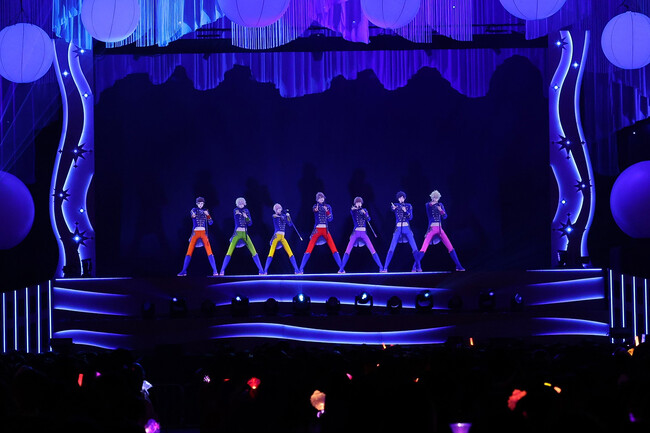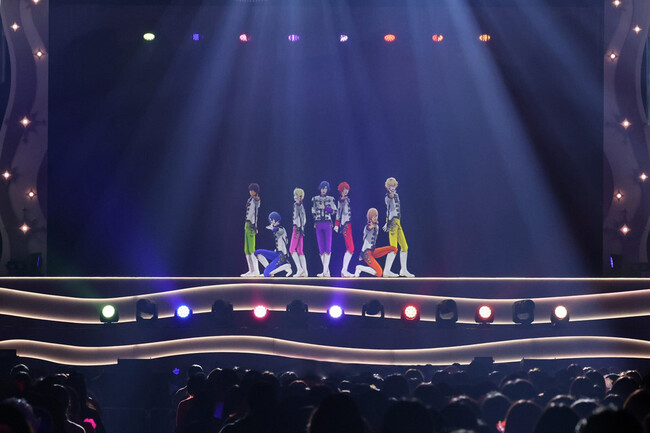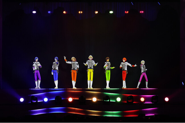 ソロ曲はグループユニット曲とはまた違った楽しさがあるが、実は緊張するメンバーもいるとのこと(挙手したのは真斗、トキヤ、翔)。また、お互いの振付を真似するなどわちゃわちゃしたやり取りもありつつ、パフォーマンスの感想や想いが伝わったかなどファンへの問いかけも交えたトークに、客席からそこかしこで歓声が上がっていた。そして、7人の魅力がギュッと詰まったグループ曲「天空のミラクルスター」でバトンを片手にパフォーマンスを繰り広げ、色とりどりの虹のような光に包まれたひとときを届けた。