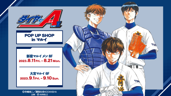 2023年8月11日(金)より新宿マルイ メン、9月1日(金)より大宮マルイの計2店舗にて「ダイヤのA actII POP UP SHOP in マルイ」の開催が決定いたしました。