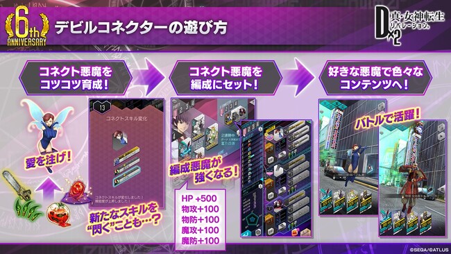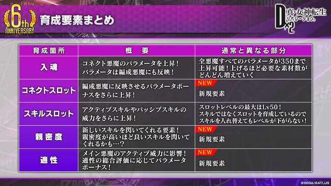 ※新育成要素 “デビルコネクター”の詳細は、ゲーム内お知らせ(https://d2-megaten-l.sega.jp/news/detail/096906.html)をご確認ください。