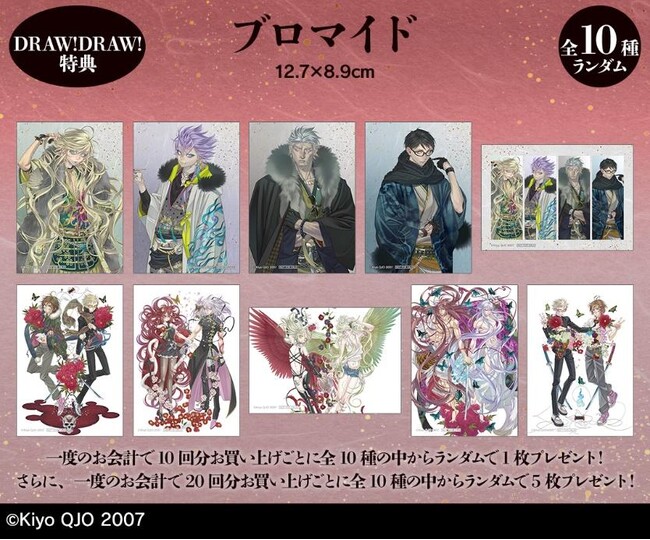 一度のお会計で10回分ご購入ごとに特典ブロマイド(全10種)をランダムで1枚、20回分ご購入で5枚プレゼント!