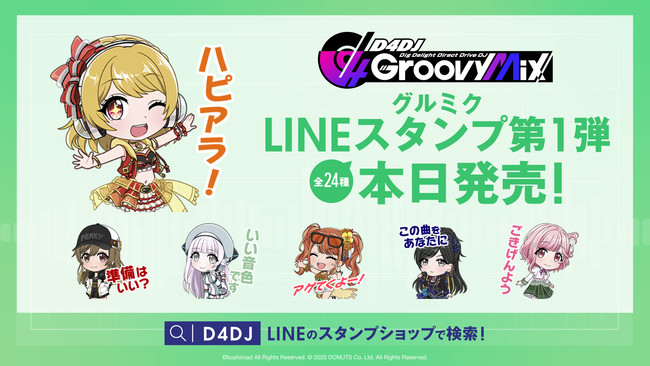 「D4DJ Groovy Mix」より、LINEスタンプ第1弾「D4DJ Groovy Mix Vol.1」(全24種)が本日7月30日(土)より発売されました。