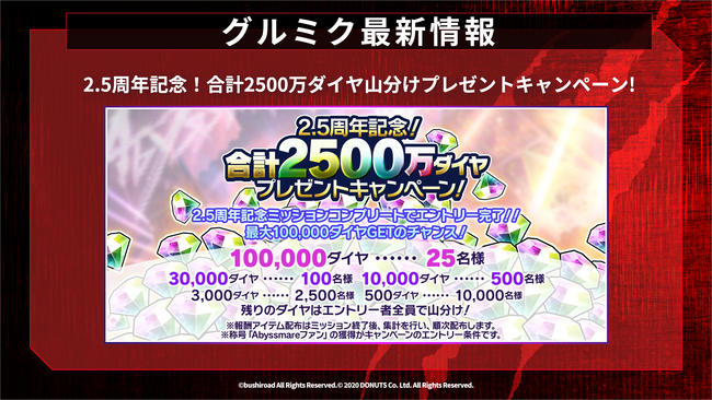 2.5周年記念ミッションをコンプリートした全ディグラーを対象に 抽選で総計2500万ダイヤを山分け!