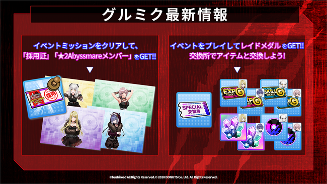 ミッションクリアで「プチオーディションガチャ」で使用できる採用証[2.5Anniv.]や ★2のAbyssmareメンバー、育成アイテムと交換できるレイドメダルをGET!