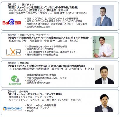 海外デジタルマーケティングの支援を行う株式会社インフォキュービック・ジャパン(本社:東京都新宿区、代表取締役:山岸ロハン、以下:インフォキュービック)は、平成30年12月7日(金)14:00より「中国インバウンドマーケティング4社合同セミナー」をバイドゥ・セミナールーム(東京都港区)にて開催致します。