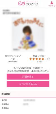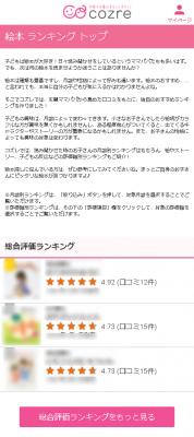 子育てに楽しさと新たな価値を提供する株式会社コズレ(本社:東京都千代田区、代表取締役:田中 穣二郎、以下コズレ)は、子育てナレッジシェアメディア「cozreマガジン」に「絵本 口コミランキング(β版)」を本日リリースしました。