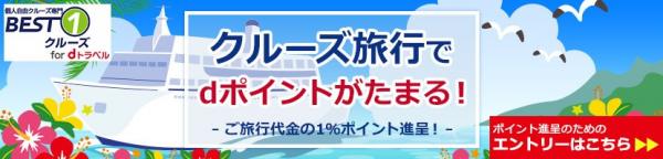 NTTドコモ社が運営する「dトラベル(https://travel.dmkt-sp.jp/)」内、「ベストワンクルーズfor dトラベル」でクルーズを予約したお客様に、dポイントを進呈いたします。