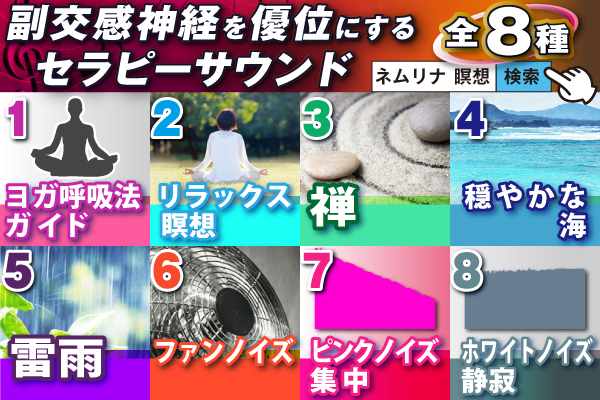 「聴覚」および「視覚」を刺激し、副交感神経を優位にすることで、