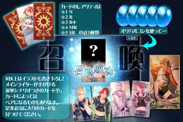 レアリティは全部で五種類あり、様々な種類のストーリーやカップリングがお楽しみ頂けます。