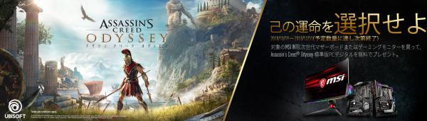 MSI、「Assassin’s Creed Odyssey」ゲームキープレゼントキャンペーンを応募者多数のため12月20日に早期終了