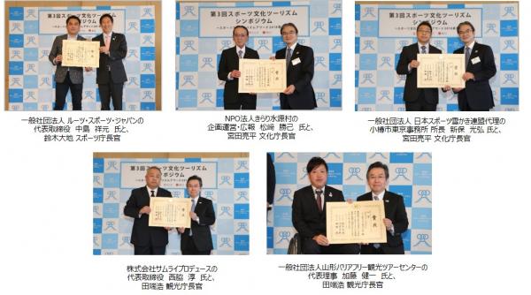 「マイスター部門 入賞(過去3回以上のイベントの開催実績又は3年以上継続的な取組であり、 国内外の観光客の増加に寄与しているスポーツ文化ツーリズムを表彰)」では、北海道の国際スポーツ雪かき選手権(一般社団法人日本スポーツ雪かき連盟)、熊本県のカヤックで農業用水路を下る!「イデベンチャー」(NPO法人きらり水源村)、東京都・全国の地域の魅力・文化を引き出しサイクルツーリズムで通年誘客を実現するツール・ド・ニッポン(一般社団法人ルーツ・スポーツ・ジャパン)を表彰しました。
