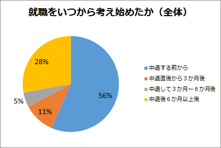 当サービスの受講生に対して行ったアンケートで、中退者が就職を考え始める時期に文系学部と理系学部で差があることが明らかになりました。