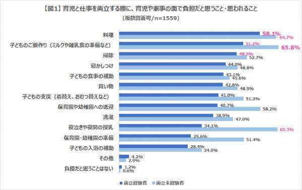【負担に思う育児・家事 第1位は、両立経験ありの方は「料理」、両立経験なしの方は「子どものご飯作り」】