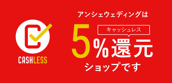 アンシェウェディングにてご購入頂いた総額の5%が還元されます。