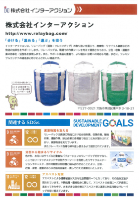 ■廃棄物・リサイクル資源の収集・運搬作業の効率化をサポートするリレーバッグ(通称:フレコンバッグ)を製造・販売する株式会社インターアクションは、アスベスト含有建材(レベル3)向けの容器である「リレーバッグロングタイプ」の売り上げが好調であるが、令和2年7月1日より、アスベスト飛散防止サポート室を担当部署としてSDGsへの本格取り組みをスタートさせる。