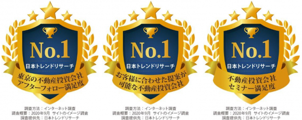 そこで、不動産コンサルティングなどを手掛ける株式会社ベルテックス(所在地:東京都新宿区、代表取締役:梶尾 祐司)が、「東京の不動産投資会社 アフターフォロー満足度」「お客様に合わせた提案が可能な不動産投資会社」「不動産投資会社 セミナー満足度」の3項目で第1位を獲得しました。