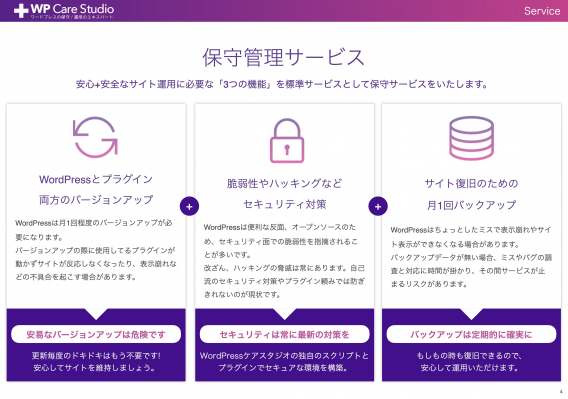 ワードプレスの保守・運用「WordPressケアスタジオ」は、WordPressサイトのセキュリティ診断を11月4日より先着10名様へ無料提供するキャンペーンを開始しました。