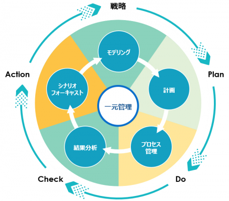 複数のシナリオごとの計画、実績に応じた修正計画、改善策ごとの予測が容易につくれて比較できます。
